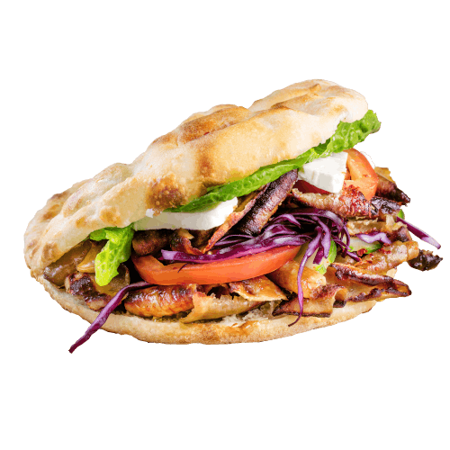 kebab, papryka, pomidor, kapusta pekińska, ogórek zielony, ogórek kiszony, sos lub oliwa z oliwek -