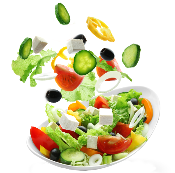 papryka, pomidor, sałata lodowa, ogórek, cebula, ser feta, oliwki, sos lub oliwa z oliwek -