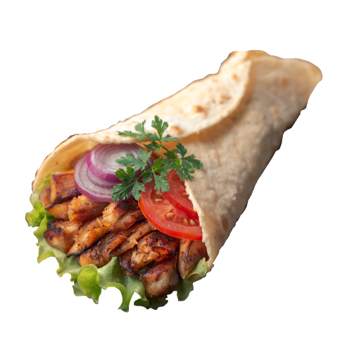 kebab, papryka, pomidor, sałata lodowa, ogórek, sos -