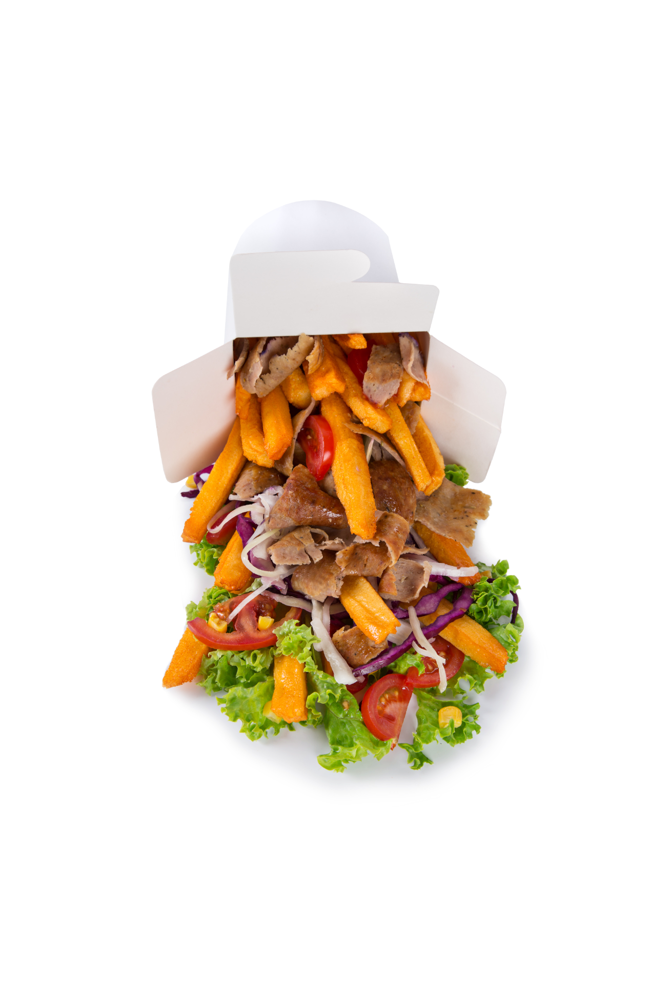 mięso, kapusta pekińska, pomidor, ogórek, cebula, cebula prażona
